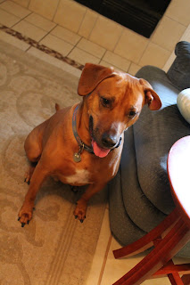 (The funny thing is when M is on the floor Percy has to come and be a part of her play time. He lays right beside her and just chills himself and watches her. He really is a good dog for my babies, he never bothers them or licks them, he never tries to chew their toys or even do more than smell them. He does like to be in their presence which is so sweet, and he even puts up with Colin's craziness when he gets in a mood where he feels like he needs to bother the Per. If we could get the barking under control it would be perfect ;) Love you Percy!)